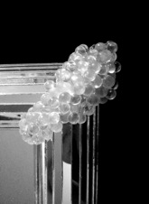 A scaled down version or our original curve design, here the corners are decorated with fused glass beads. The beads have translucent quality which contrasts with the sharp lines of the mirror beneath.